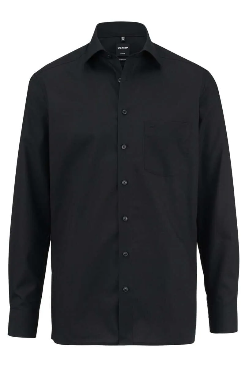 OLYMP Luxor Modern Fit Overhemd zwart, Effen