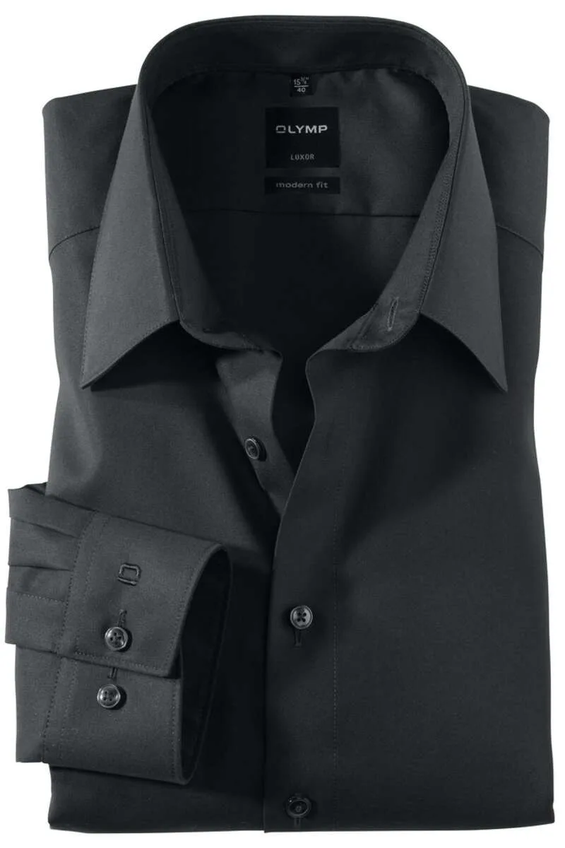 OLYMP Luxor Modern Fit Overhemd zwart, Effen