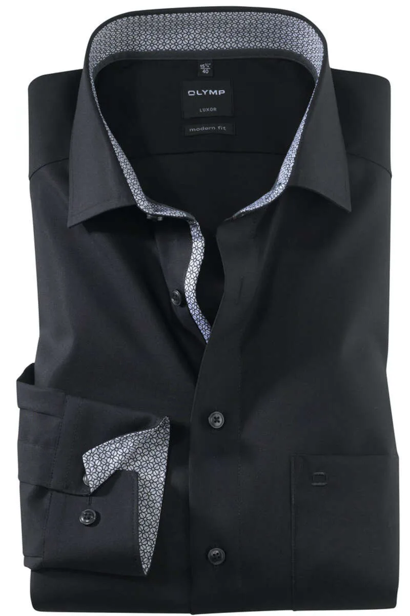 OLYMP Luxor Modern Fit Overhemd zwart, Effen
