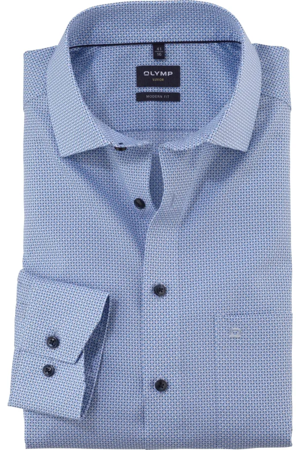 - Bij bol.com kun je OLYMP modern fit overhemd popeline lichtblauw dessin Strijkvrij Boord kopen voor slechts €63,89
