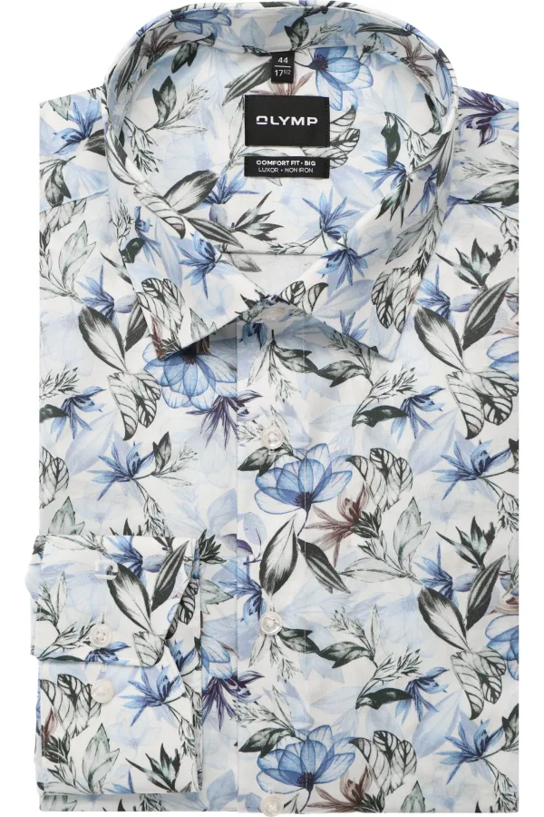 - Bij bol.com kun je OLYMP Luxor comfort fit Big overhemd - dobby - wit met blauw en groen bloemen dessin - Strijkvrij - Boord kopen voor slechts €120,90