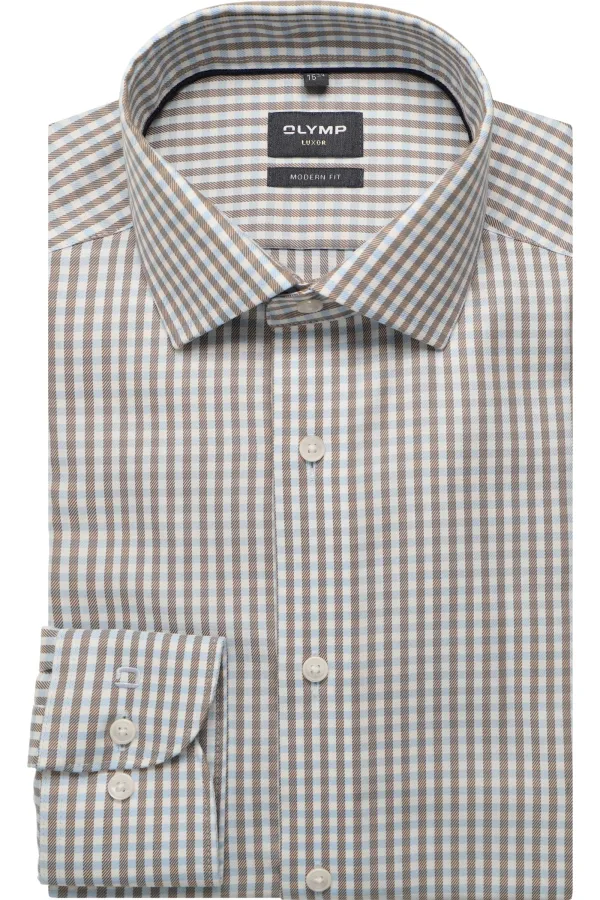 - Bij Overhemden.com kun je OLYMP Luxor Overhemd blauw/bruin, Vichy ruit kopen voor slechts €74,95 , dat is 13% goedkoper dan bij Bol (€85,90).