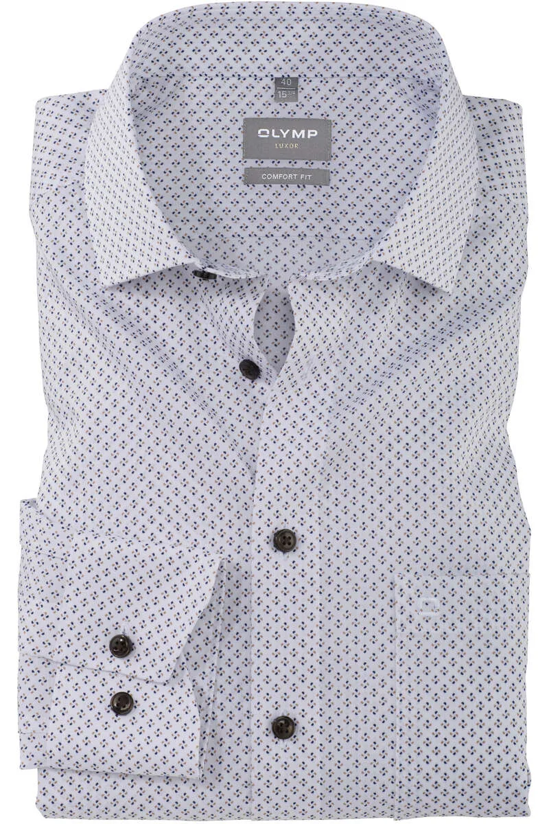 OLYMP Luxor Overhemd blauw/bruin/wit, Motief