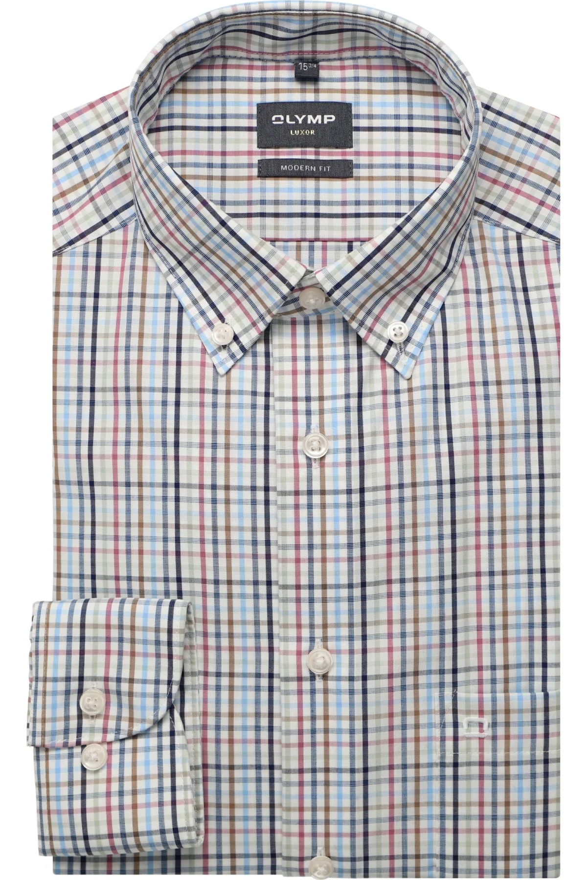 - De laagste prijs van OLYMP Luxor modern fit overhemd popeline wit met blauw en bruin geruit Strijkvrij Boord werd gevonden op 24 april 2026 10:04.