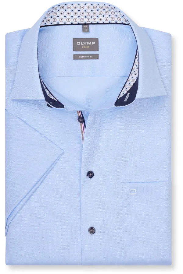 - Bij bol.com kun je OLYMP Luxor comfort fit overhemd - korte mouw - structuur - lichtblauw - Strijkvrij - Boord kopen voor slechts €79,10 , dat is 1% goedkoper dan bij Overhemden.com (€79,95).