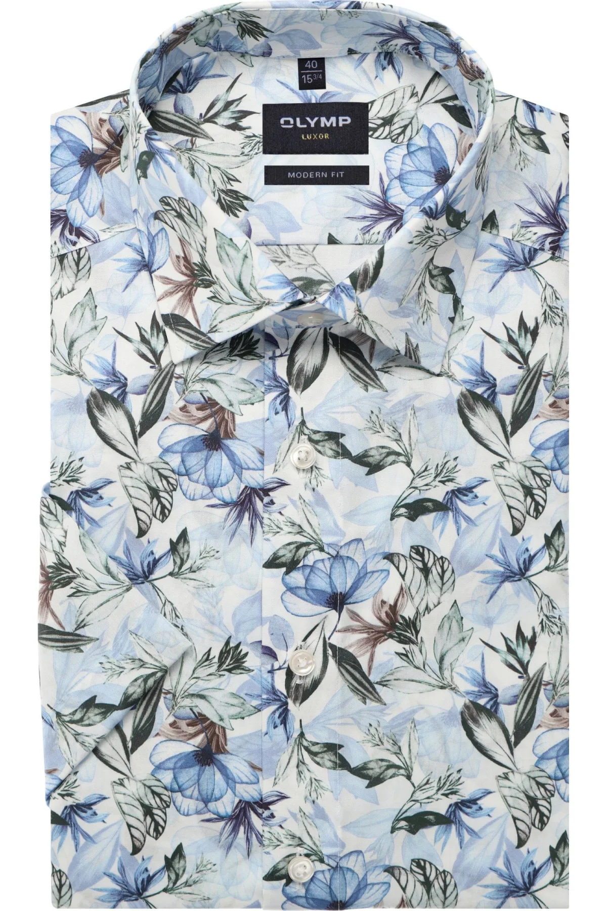 - De laagste prijs van OLYMP Luxor modern fit overhemd - korte mouw - dobby - wit met blauw en groen bloemen dessin - Strijkvrij - Boord werd gevonden op 24 april 2026 15:37.