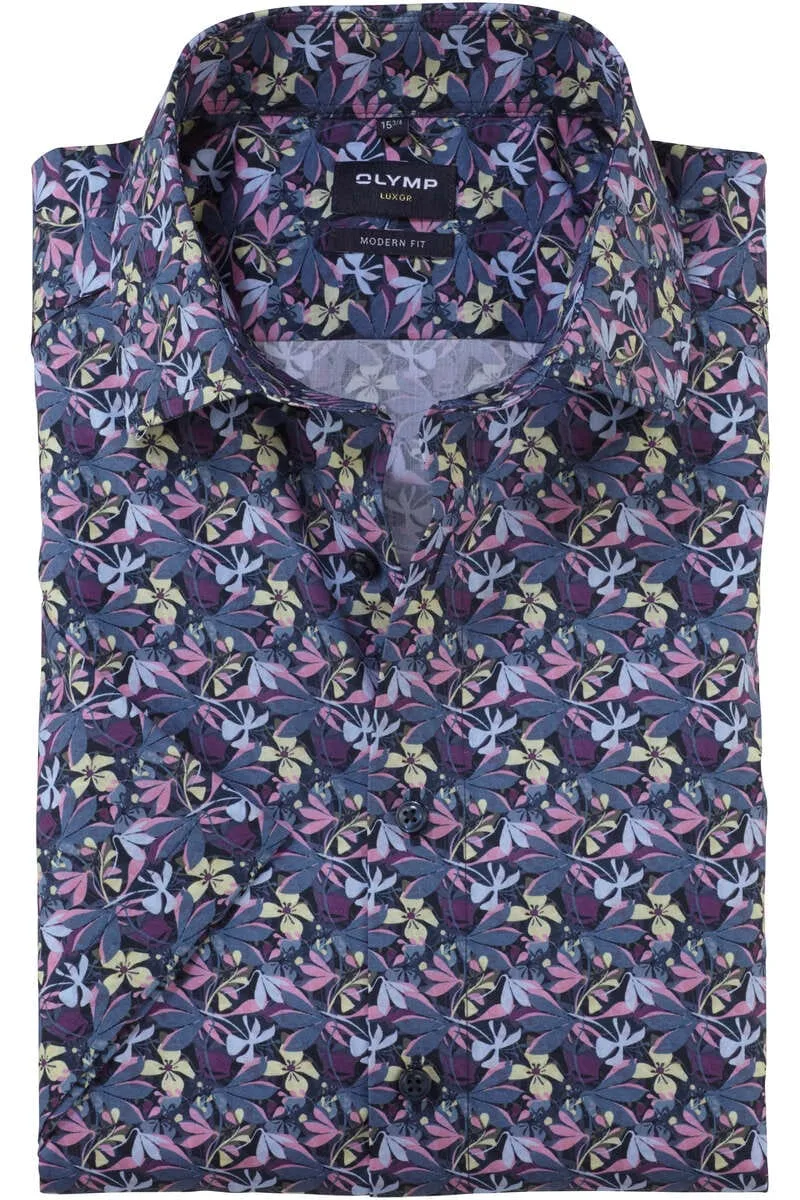 OLYMP Luxor Overhemd Korte mouw blauw/geel Prijzen