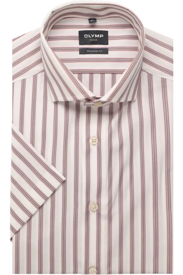 - Bij bol.com kun je OLYMP Luxor modern fit overhemd - korte mouw - popeline - wit met roze blauw en bruin gestreept - Strijkvrij - Boord kopen voor slechts €90,90