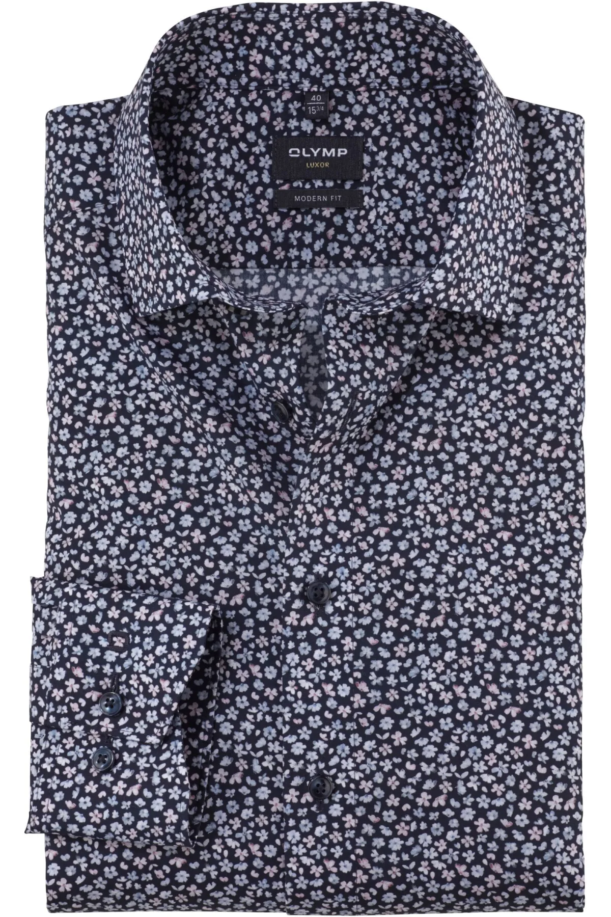 - Bij Overhemden.com kun je OLYMP Luxor Overhemd marine, Bedrukt kopen voor slechts €84,95