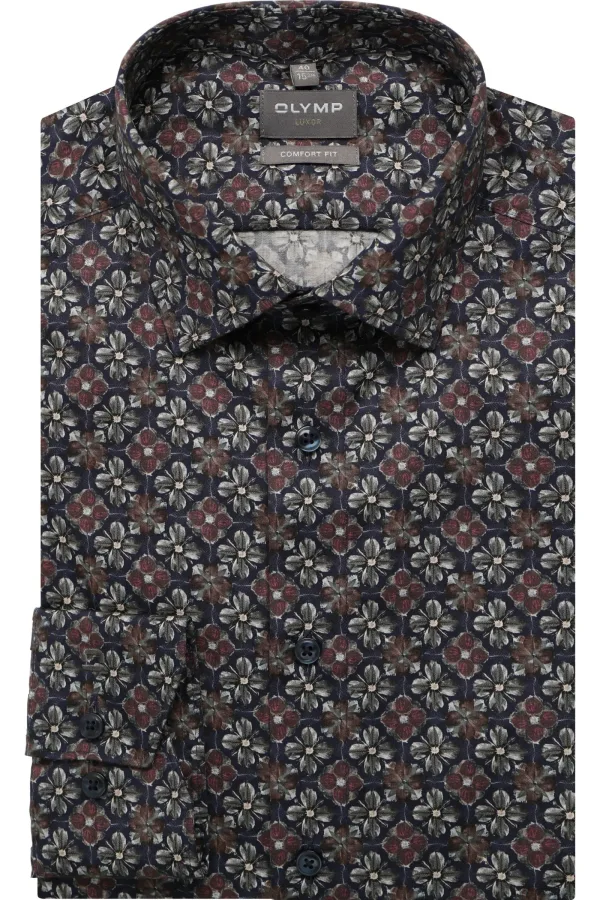 OLYMP Luxor Overhemd marine, Bedrukt Prijzen