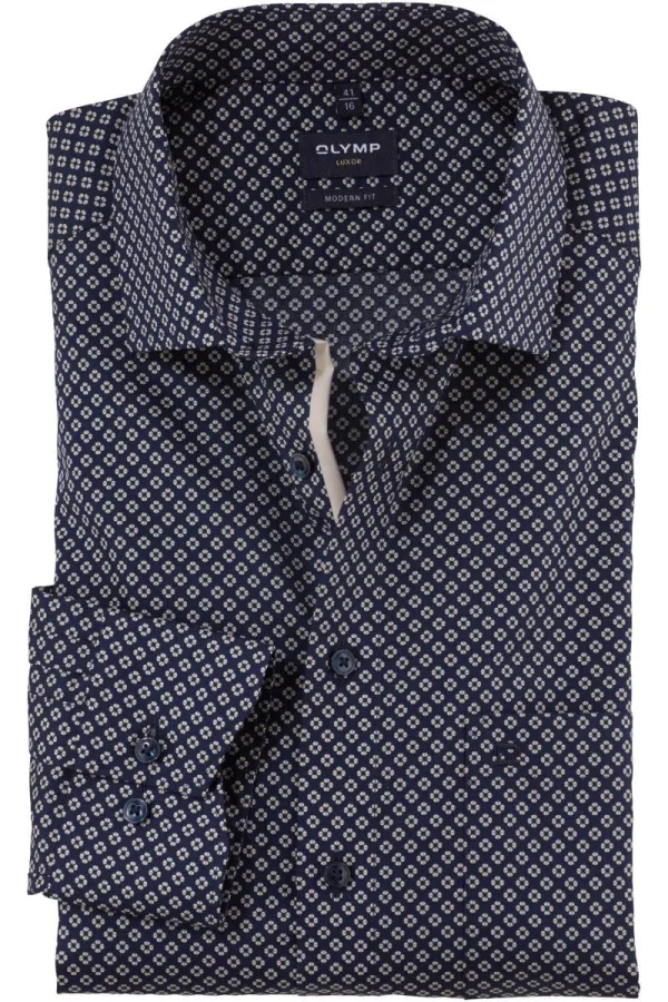 OLYMP Luxor Overhemd marine, Bedrukt Prijzen