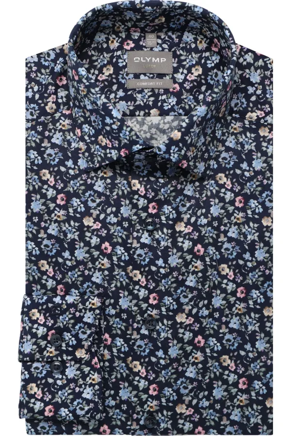 OLYMP Luxor Overhemd marine, Bedrukt Prijzen