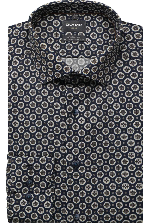 OLYMP Luxor Overhemd marine, Bedrukt Prijzen
