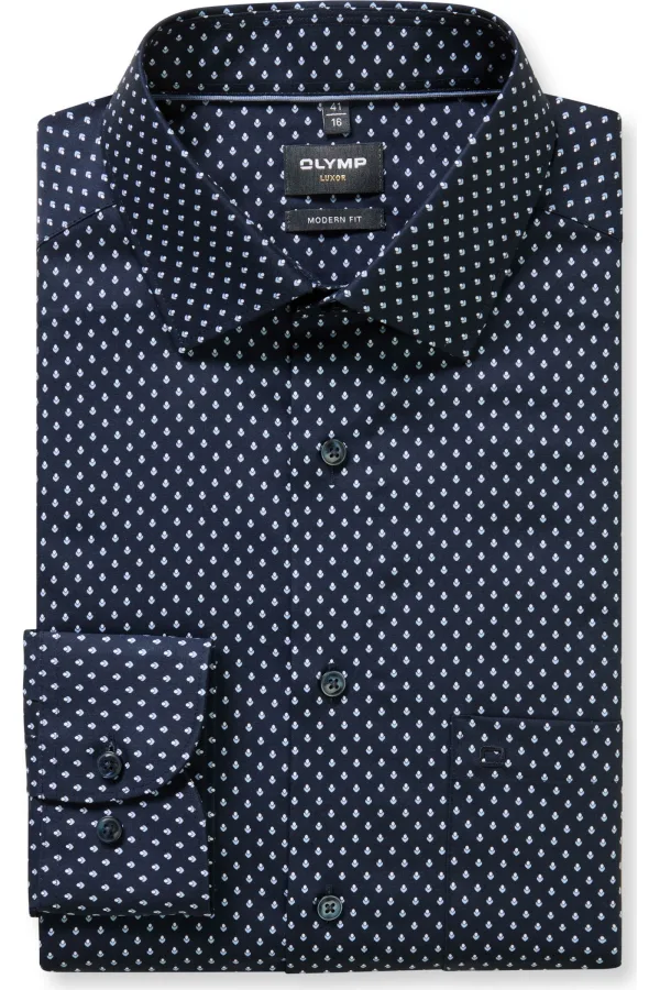 OLYMP Luxor Overhemd marine, Bedrukt Prijzen
