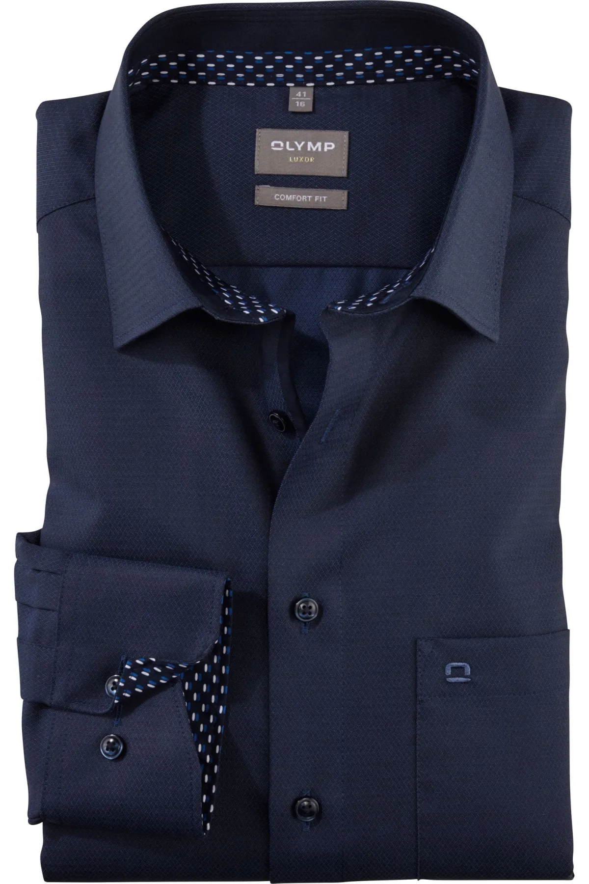 - Bij Overhemden.com kun je OLYMP Luxor Overhemd nachtblauw, Faux-uni kopen voor slechts €85,95