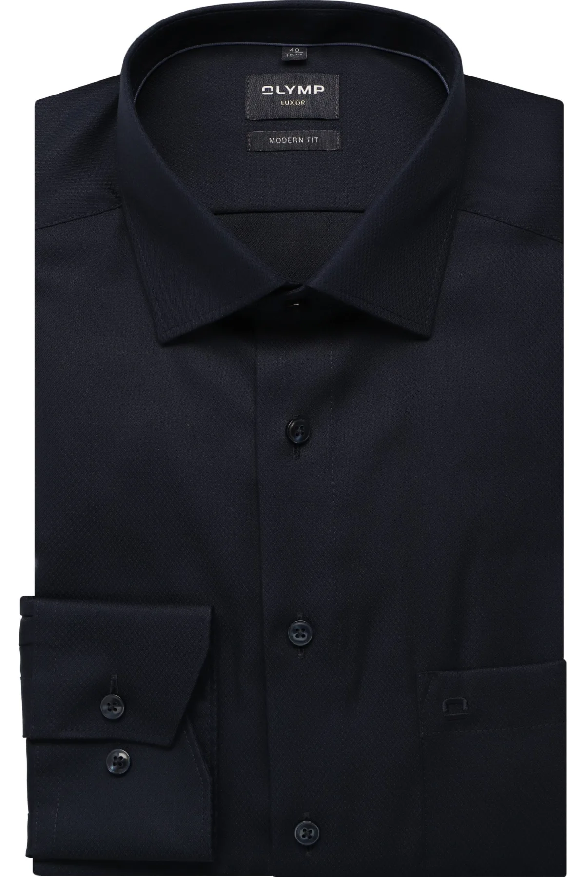 OLYMP Luxor modern fit overhemd - structuur - nachtblauw -...