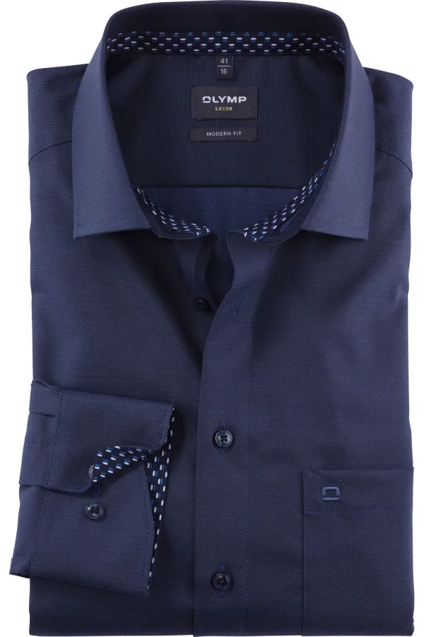 - Bij Overhemden.com kun je OLYMP Luxor Overhemd nachtblauw, Faux-uni kopen voor slechts €68,95