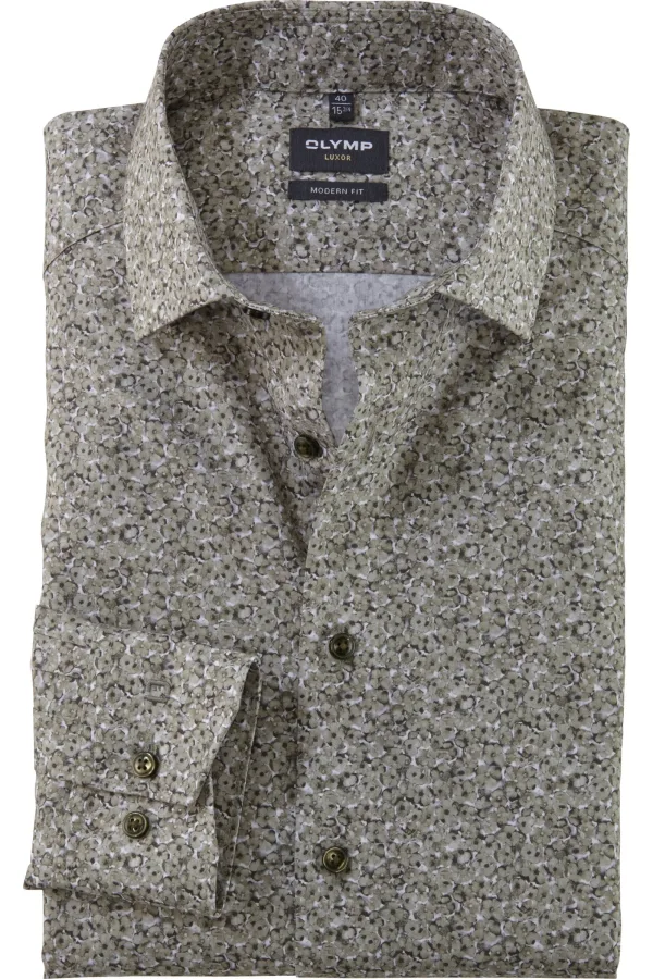 OLYMP Luxor Overhemd olijf, Bedrukt Prijzen
