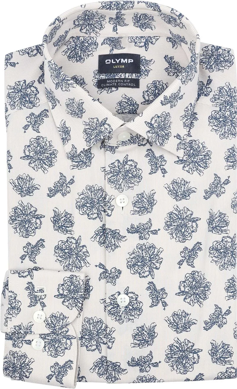 - Bij bol.com kun je OLYMP 24/7 Luxor modern fit overhemd - popeline - offwhite met blauw bloemen dessin - Strijkvriendelijk - Boord kopen voor slechts €87,80 , dat is 2% goedkoper dan bij Suitableshop (€89,95).