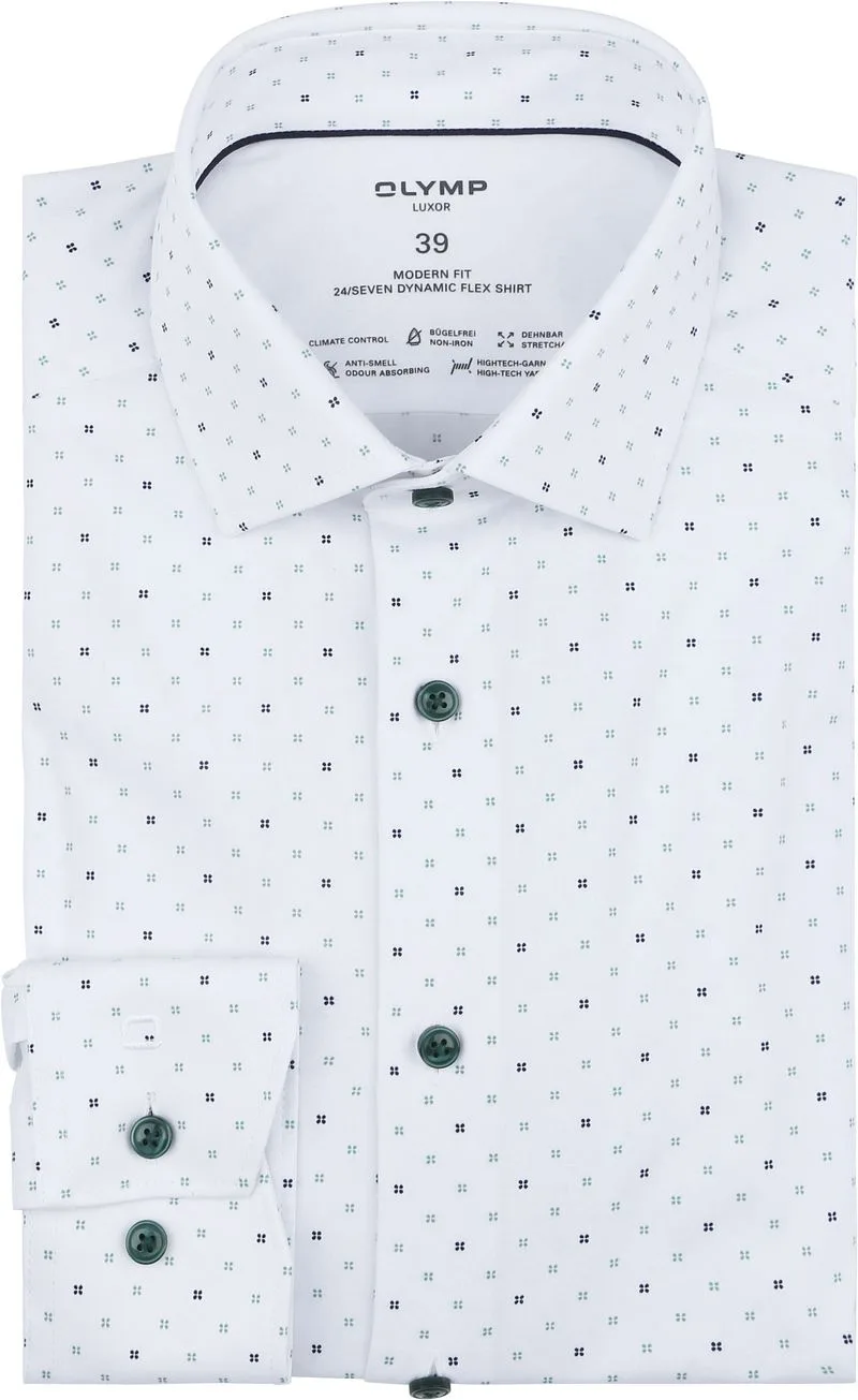 Olymp Luxor Overhemd Stretch Print Wit