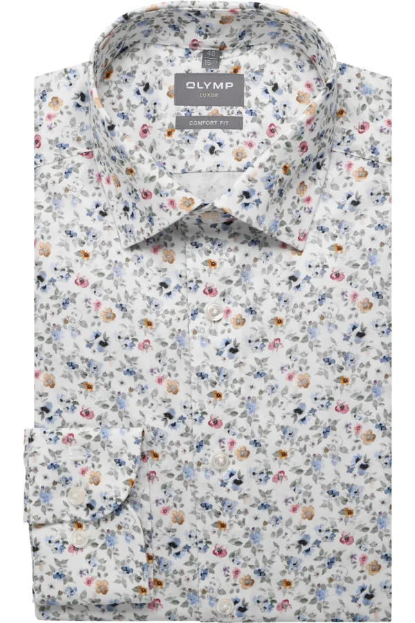 - De laagste prijs van OLYMP Luxor comfort fit overhemd dobby wit met blauw en roze bloemetjes dessin Strijkvrij Boord werd gevonden op 25 april 2026 20:23.