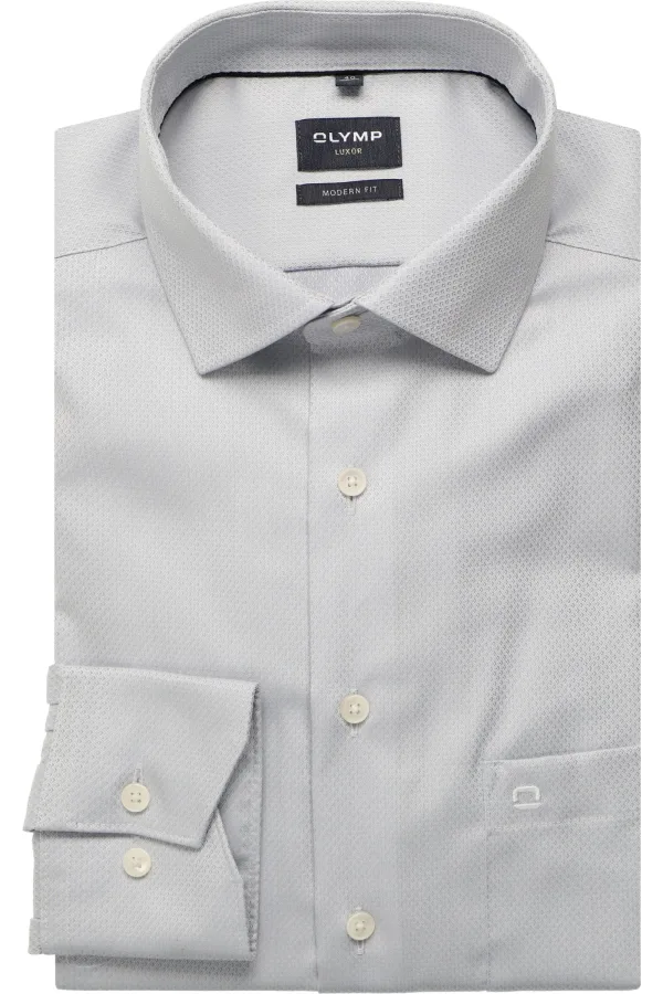 OLYMP Luxor modern fit overhemd - structuur - zilvergrijs -...