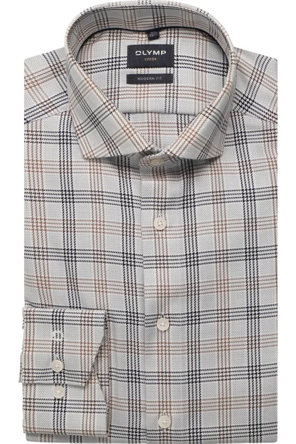 OLYMP Luxor Overhemd zilvergrijs, Ruit Prijzen