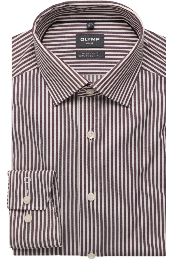 - Bij Overhemden.com kun je OLYMP Luxor Performance Climate Control Overhemd aubergine, Gestreept kopen voor slechts €89,95