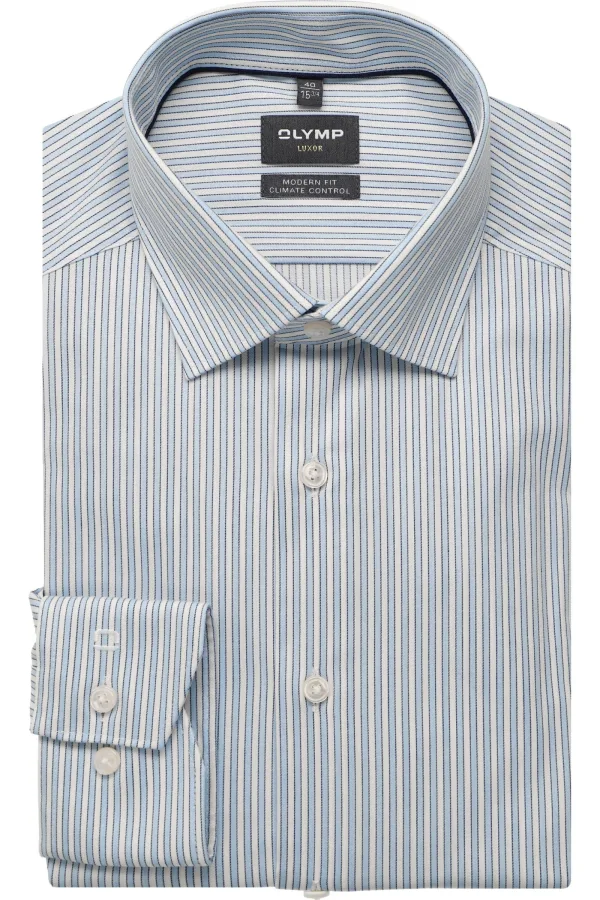 - Bij Overhemden.com kun je OLYMP Luxor Performance Climate Control Overhemd blauw, Gestreept kopen voor slechts €77,95