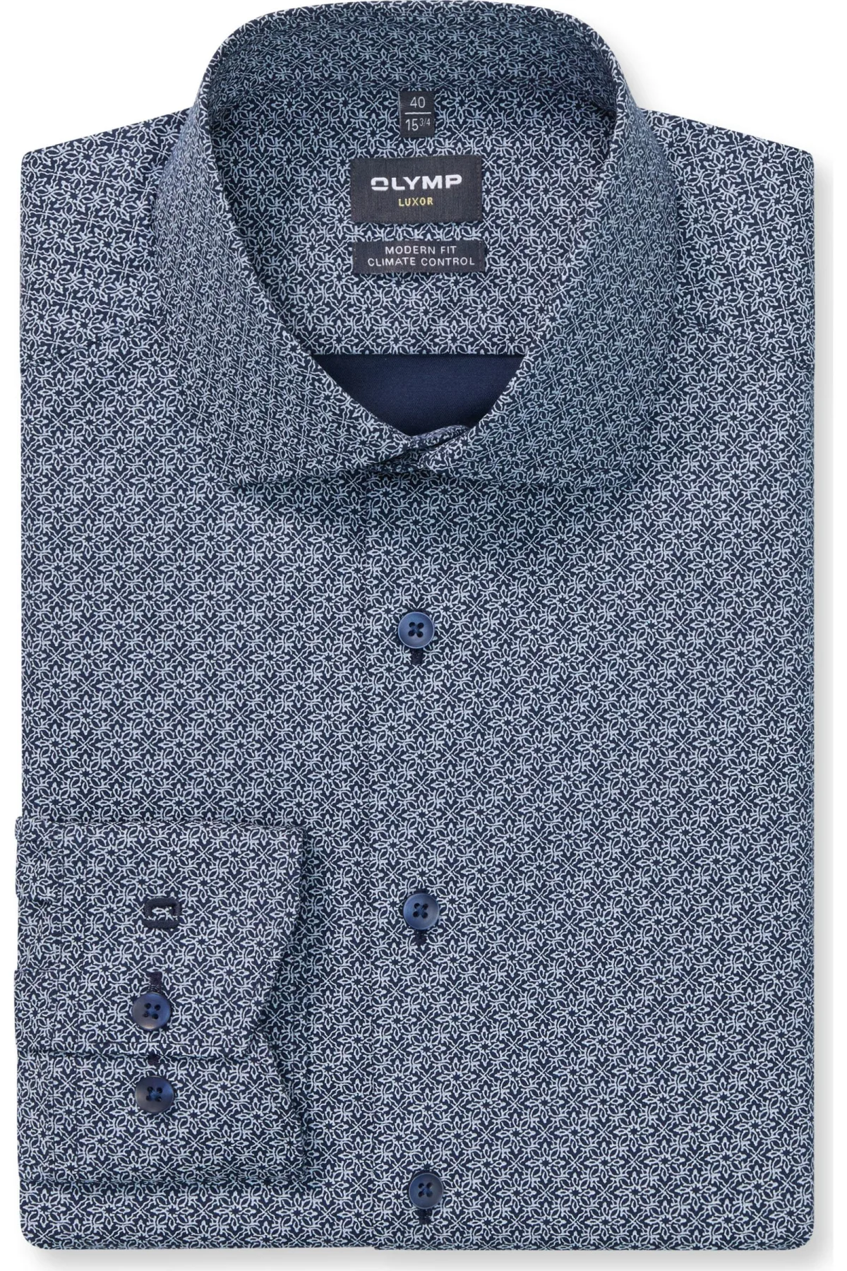 OLYMP Luxor Performance Climate Control Overhemd marine, Bedrukt Prijzen