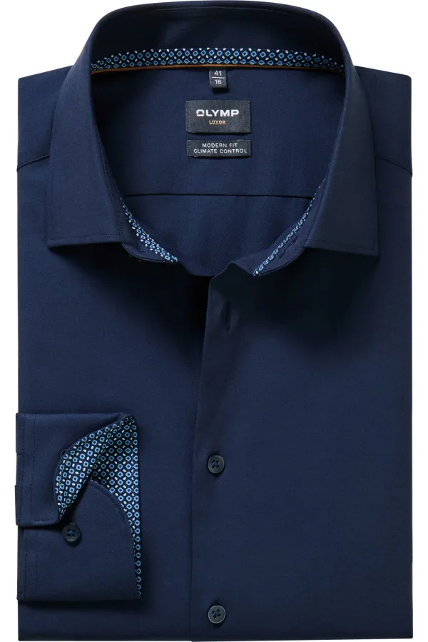 - Bij Overhemden.com kun je OLYMP Luxor Performance Climate Control Overhemd marine, Effen kopen voor slechts €89,95