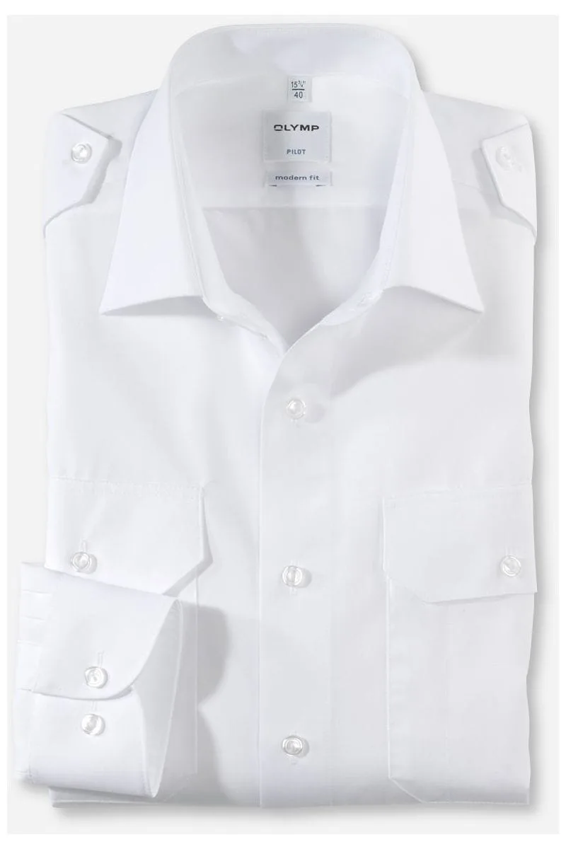OLYMP Modern Fit Piloot shirt wit, Effen