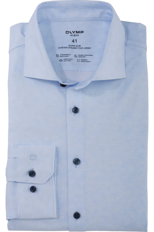 - Bij Overhemden.com kun je OLYMP No. Six 24/Seven Jersey shirt blauw, Bedrukt kopen voor slechts €99,95