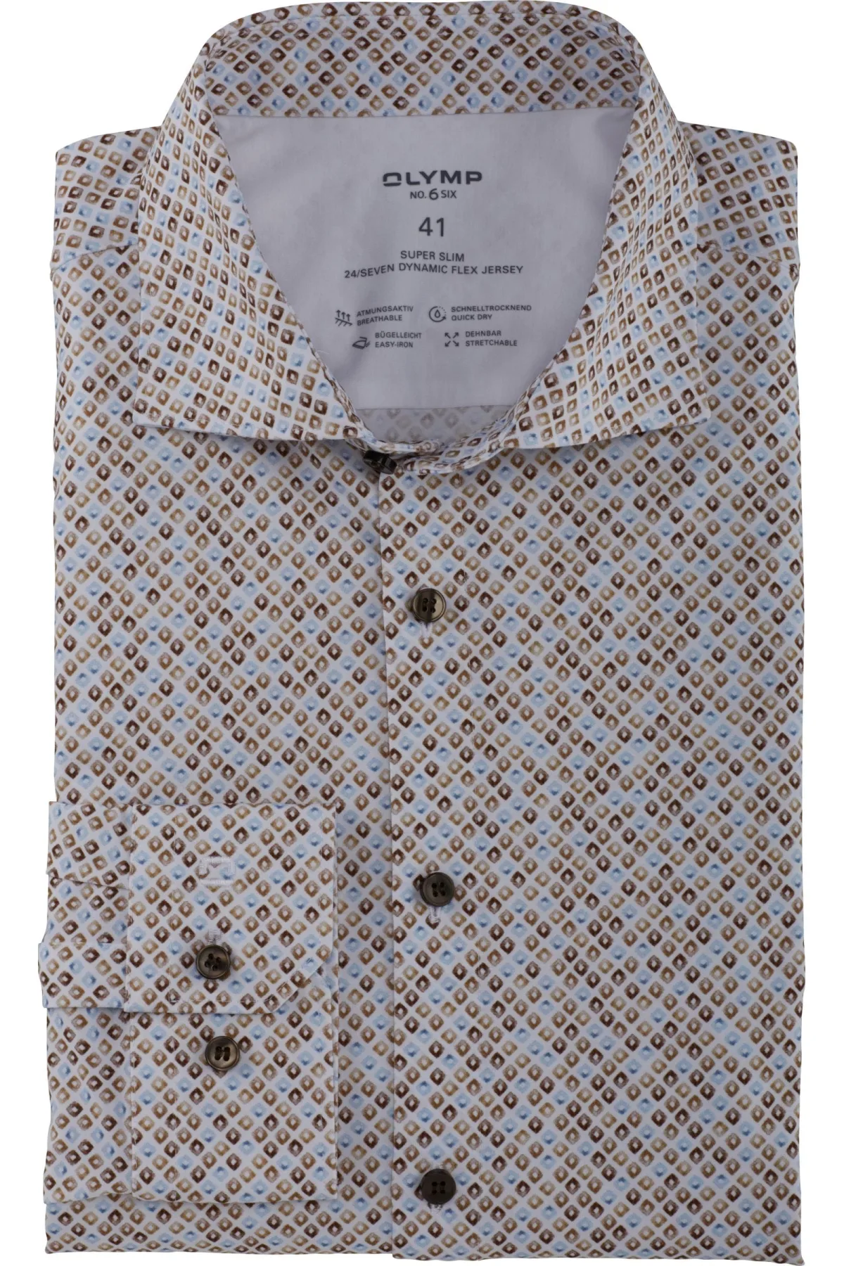- Bij Overhemden.com kun je OLYMP No. Six 24/Seven Jersey shirt bruin, Bedrukt kopen voor slechts €33,95