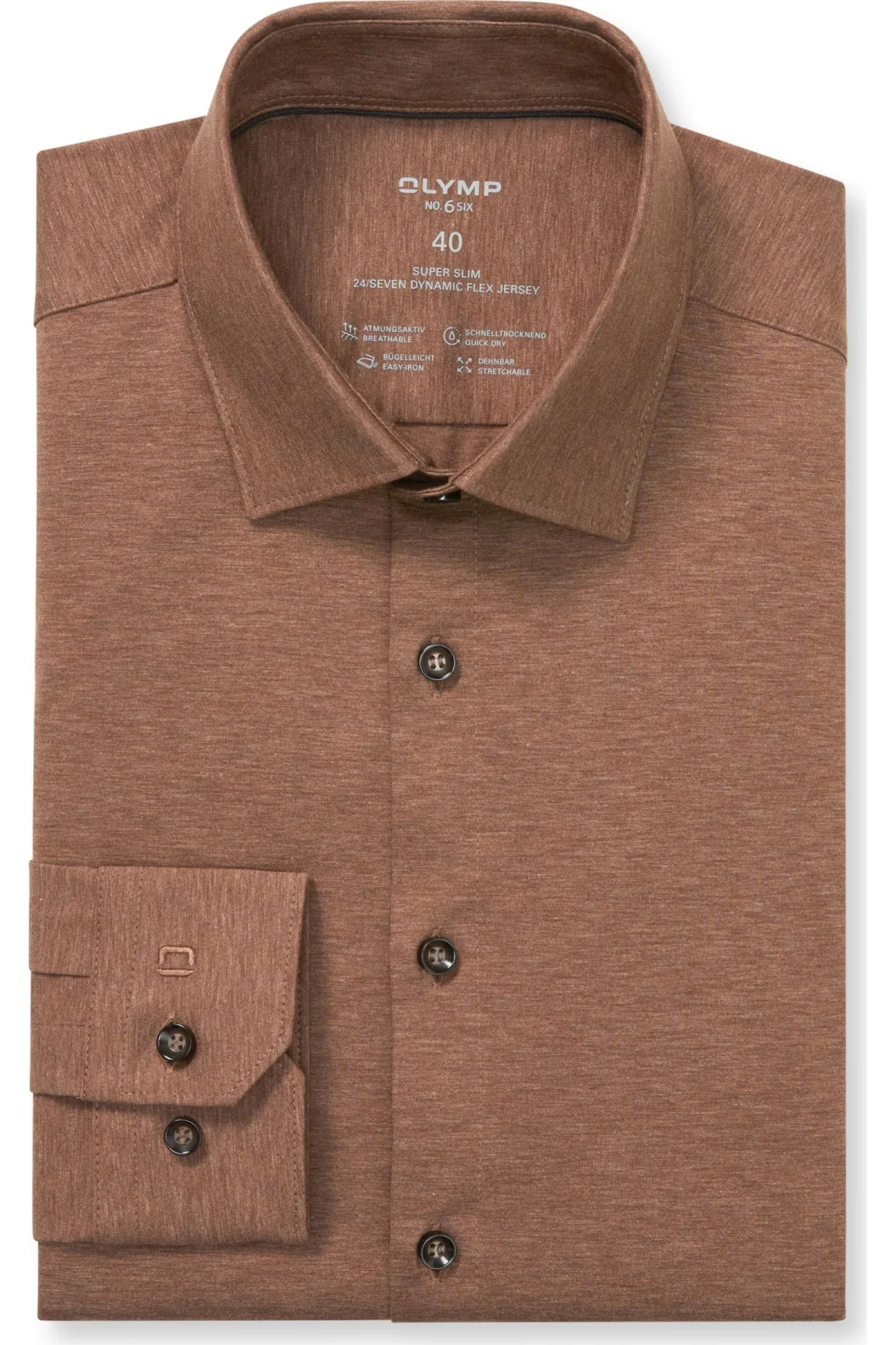 OLYMP No. Six 24/Seven Jersey shirt bruin, Effen Prijzen