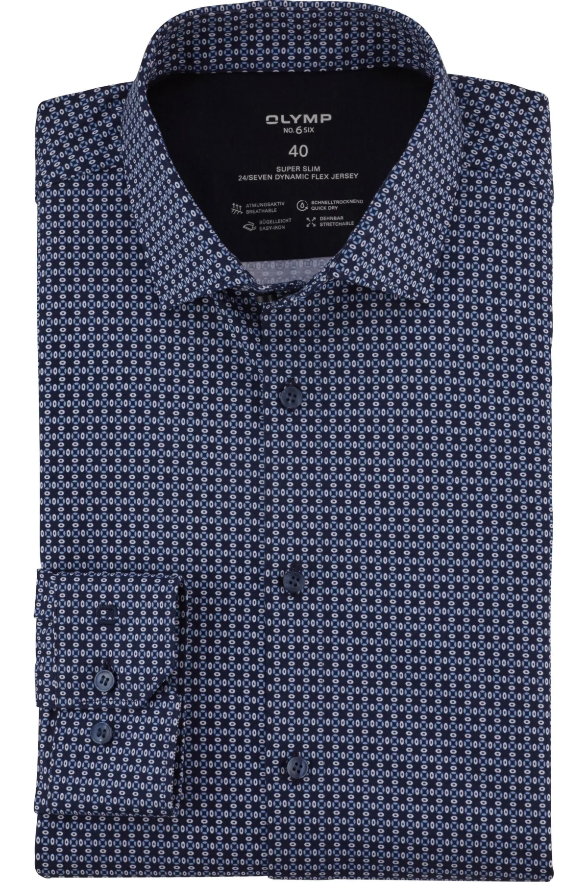 - Bij Overhemden.com kun je OLYMP No. Six 24/Seven Jersey shirt marine, Bedrukt kopen voor slechts €88,95
