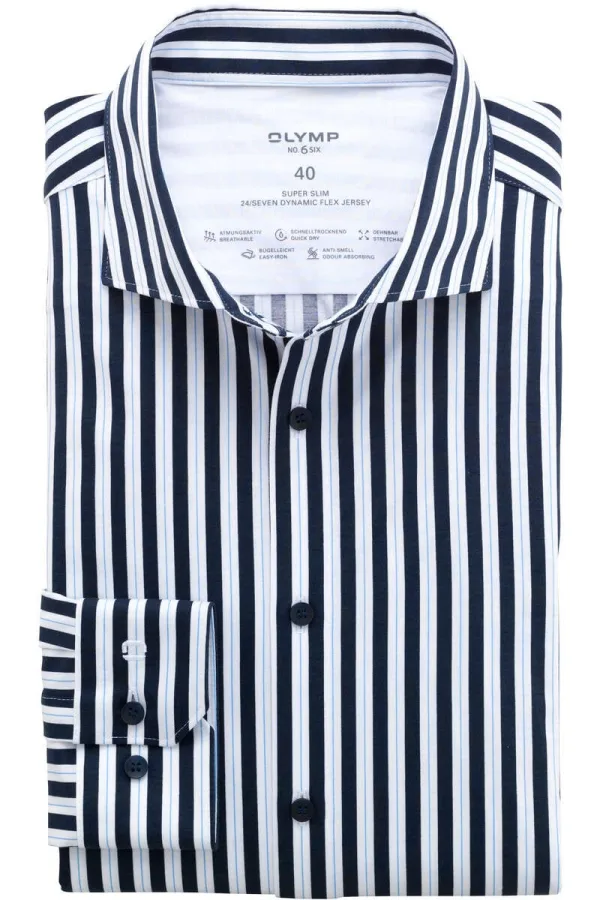 - Bij Overhemden.com kun je OLYMP No. Six 24/Seven Jersey shirt marine, Gestreept kopen voor slechts €78,95