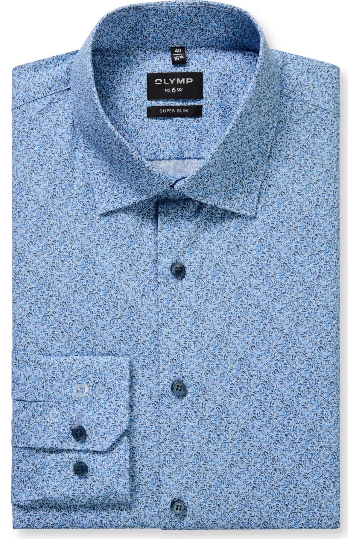 OLYMP No. Six Overhemd blauw, Bedrukt Prijzen