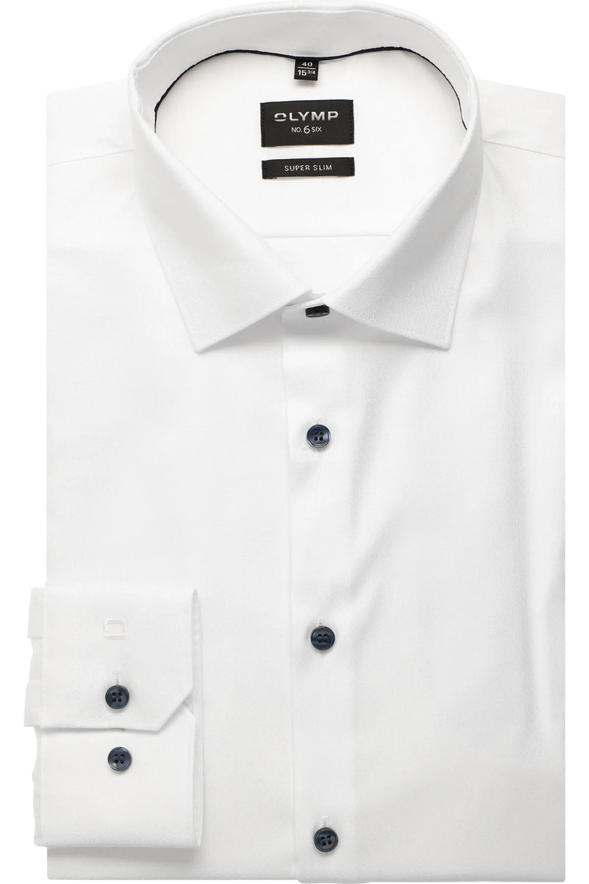 Zakelijk overhemd voor heren van OLYMP No. Six;Katoenmix met stretchgehalte;Super slim fit;Kentkraag;Doorknoopsluiting;Sportmanchetten;Ruglengte bij maat 40: 80 cm;Schouderbreedte bij maat 40: 41 cm;Mouwlengte bij maat 40: 67 cm