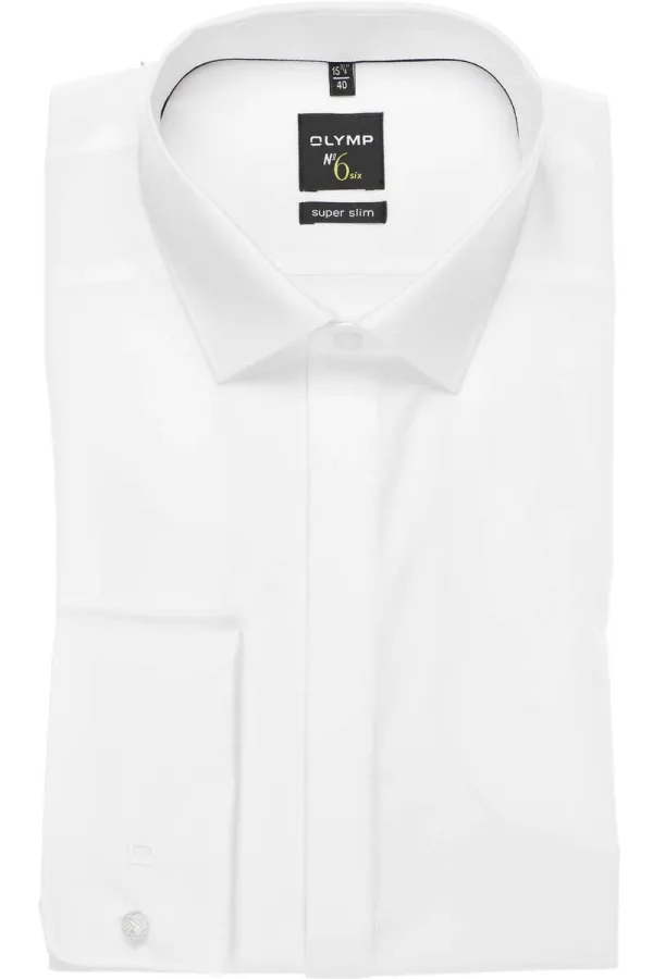 Heren smokingoverhemd van OLYMP No. Six;Model 'Urban Kent';Look: effen;Pasvorm: Super Slim Fit;Overhemdkraag: Kentkraag;Knoopsluiting: verborgen;Mouwvorm: lange mouw;Mouwboord: Manchet;Bijzondere kenmerken: Easycare;Manchettype: Omslagmanchetten;Gelegenheid: Bruiloft, Bruiloft gast, Zakelijk, Feestelijk;Materiaalverwerking: Popeline;Materiaal: Katoenmix;Schouderbreedte bij maat 40: 37 cm;Mouwlengte bij maat 40: 77 cm;Ruglengte bij maat 40: 78 cm