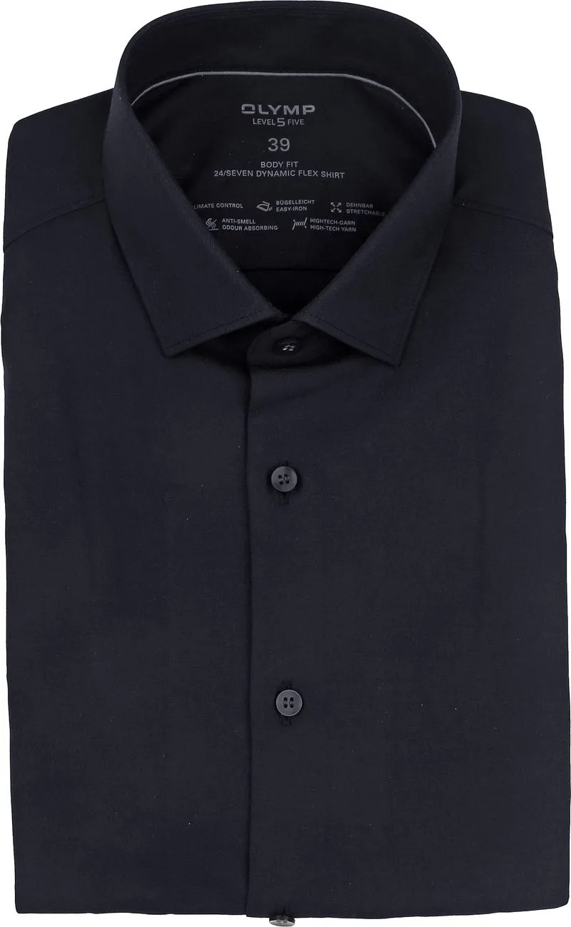 OLYMP Level Five Performance Climate Control Overhemd zwart, Effen