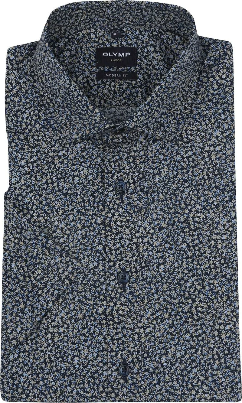 OLYMP Short Sleeve Overhemd Luxor Print Navy Prijzen