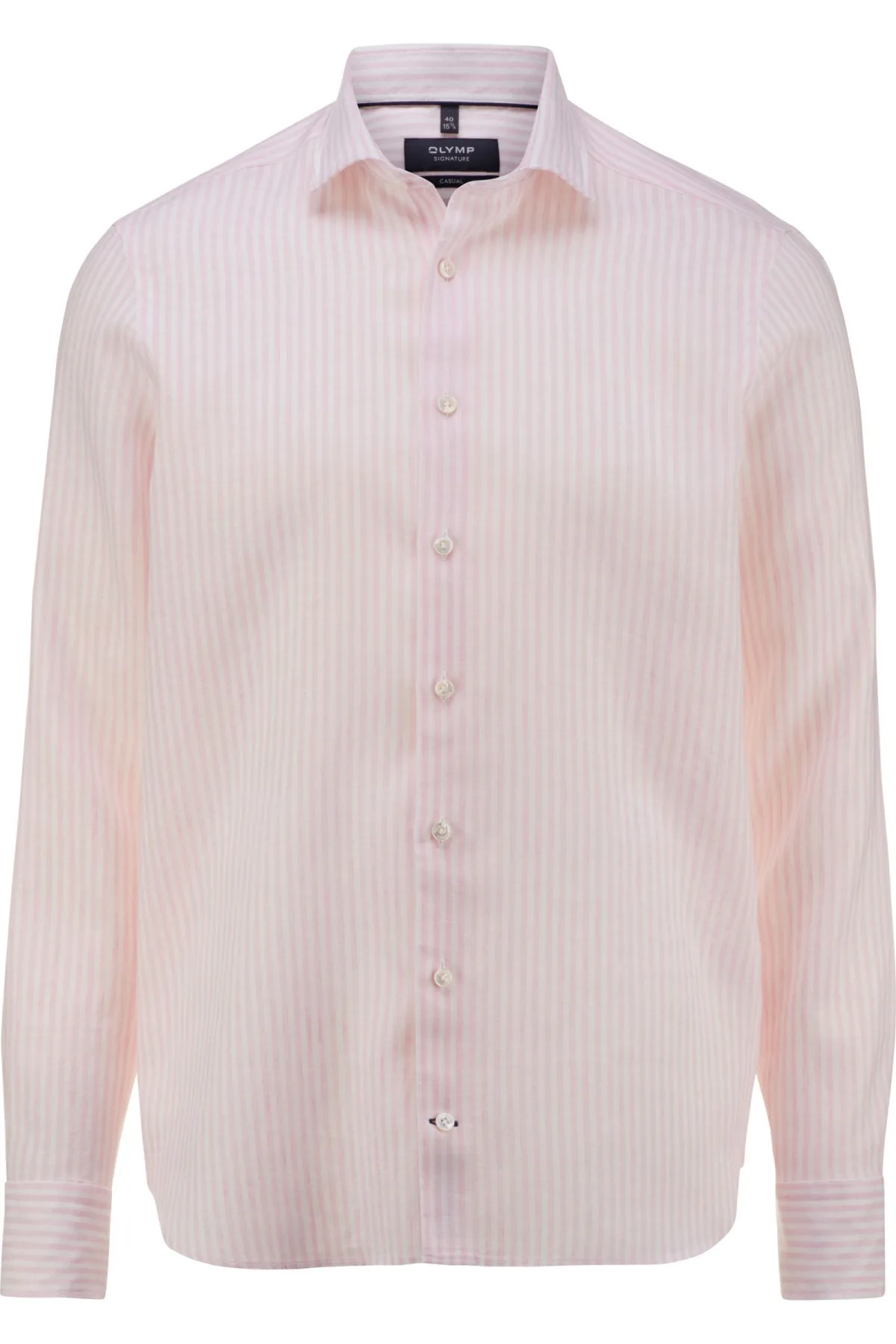 OLYMP SIGNATURE Casual Linnen Overhemd roos, Gestreept Prijzen