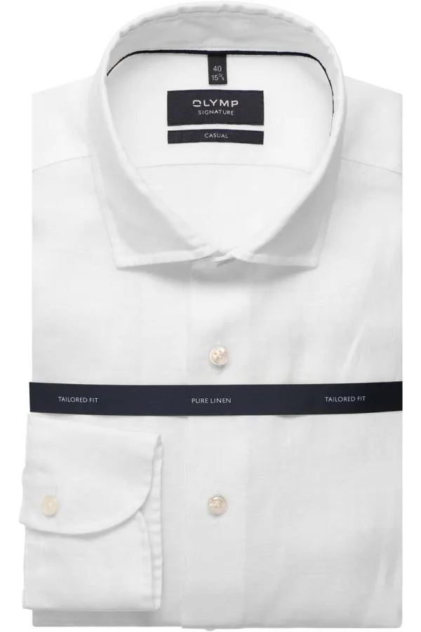 OLYMP SIGNATURE Casual Linnen Overhemd wit, Effen Prijzen
