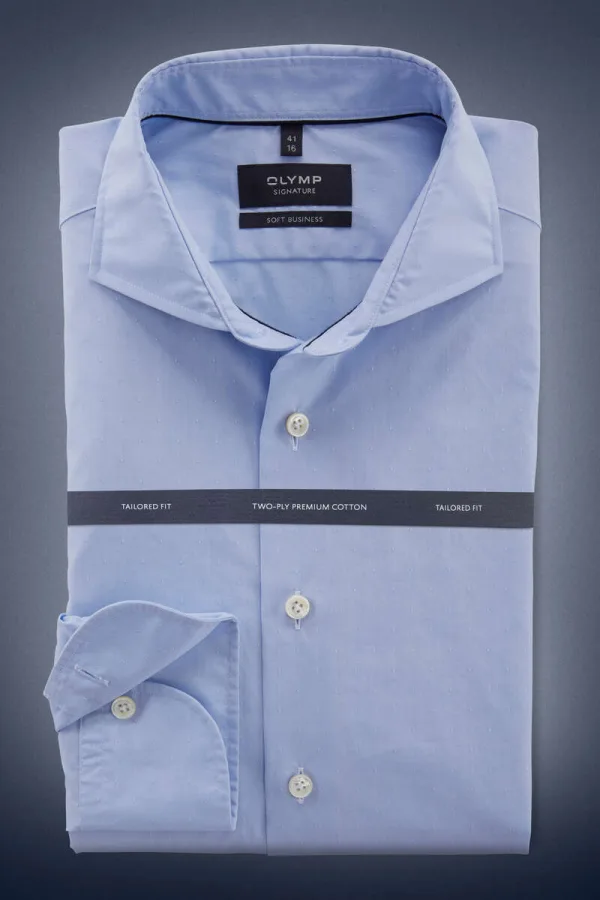 - Bij Overhemden.com kun je OLYMP SIGNATURE Soft Business Overhemd blauw, Effen kopen voor slechts €117,95