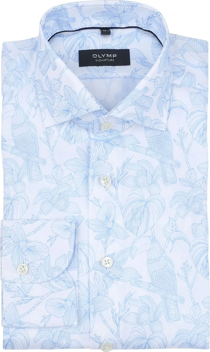 Olymp Signature Twill Overhemd Print Lichtblauw Prijzen