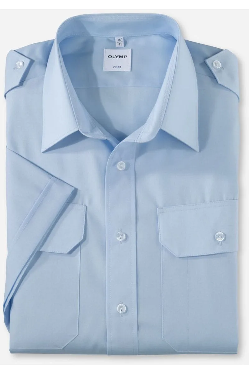 OLYMP Tendenz Comfort Fit Piloot shirt Korte mouw blauw