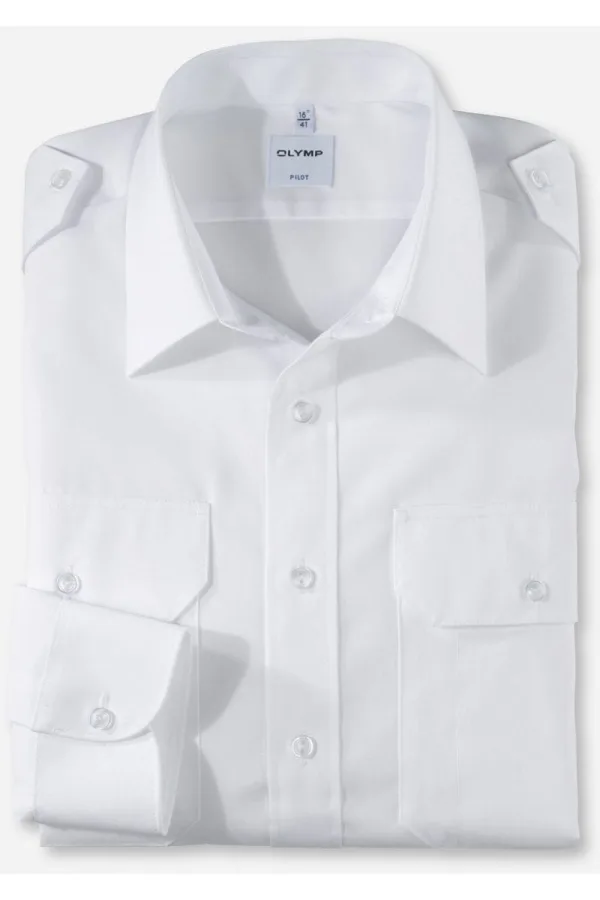 OLYMP Tendenz Comfort Fit Piloot shirt wit, Effen Prijzen