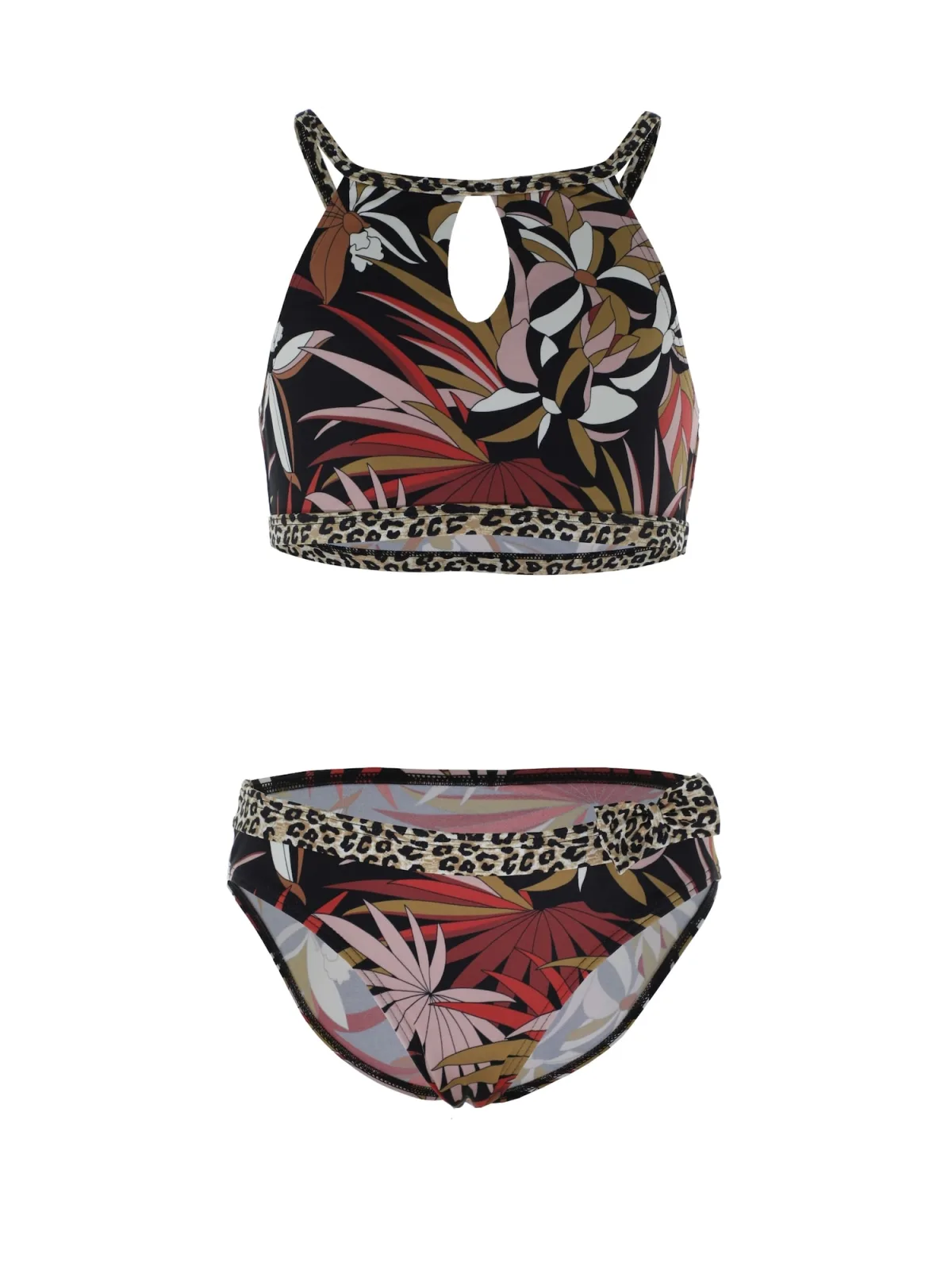 Soort bandjes: Sportrug/kruisende bandjes; Bh/bikini type: High neck; Motief: Bloemenprint; Extra's: All-over patroon, Applicaties