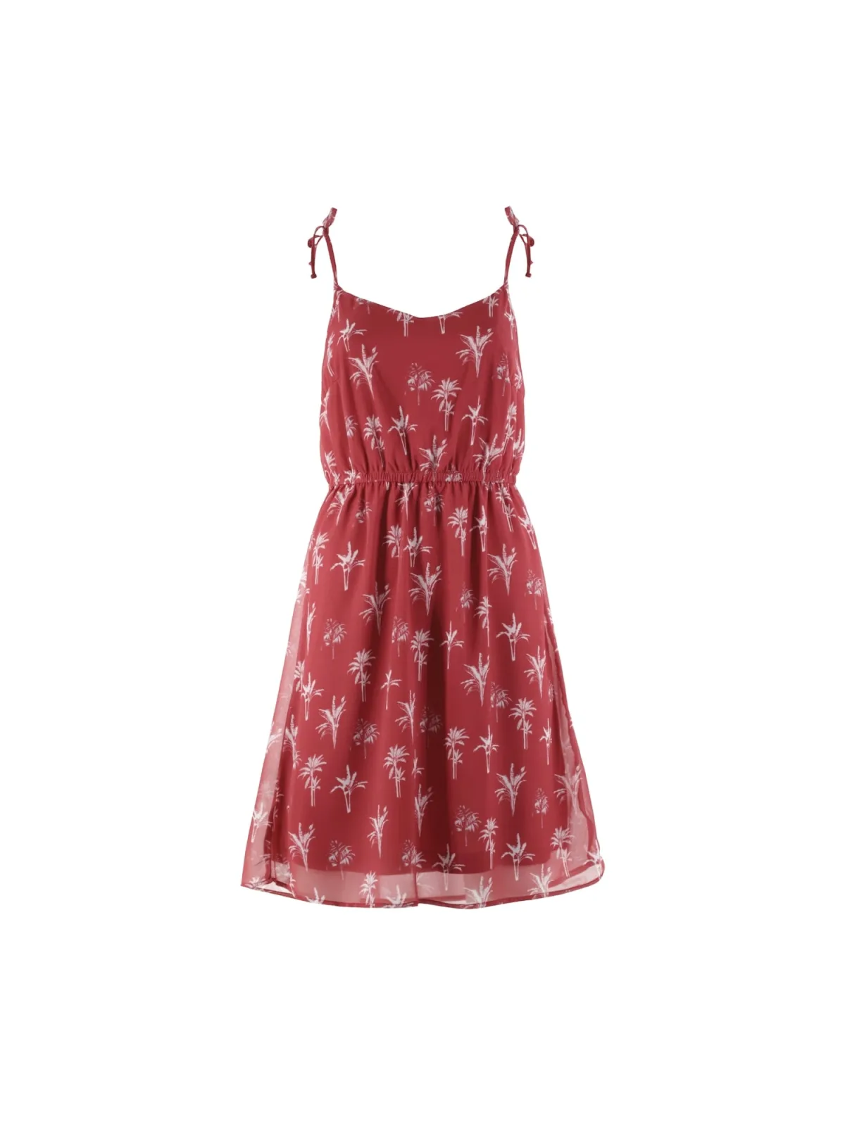 Design: Gevoerde zoom/rand; Halstype: V-hals; Motief: Bloemenprint; Soort bandjes: Spaghettibandjes; Details: Gedrapeerd; Extra's: All-over patroon; Lengte: Knielengte; Snit: Getailleerd; Pasvorm: Normale pasvorm; Armlengte: Mouwloos